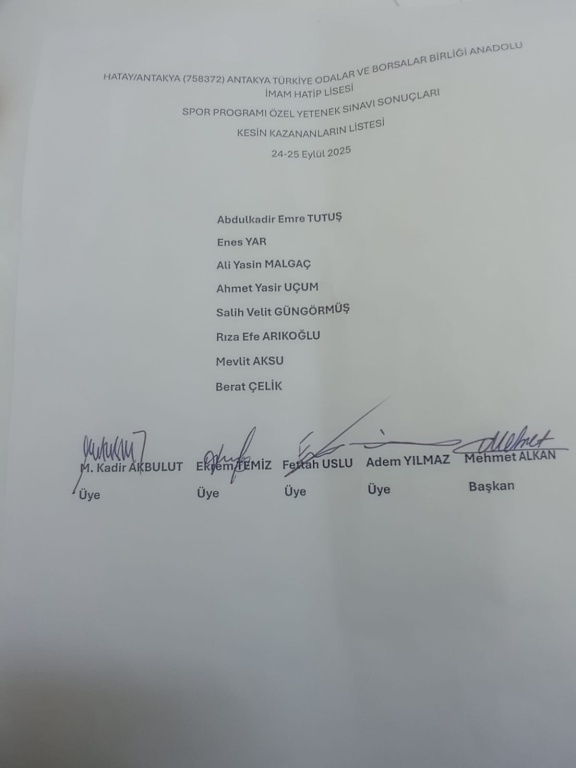 Okulumuz spor bölümü özel yetenek sınav sonuçları açıklandı.